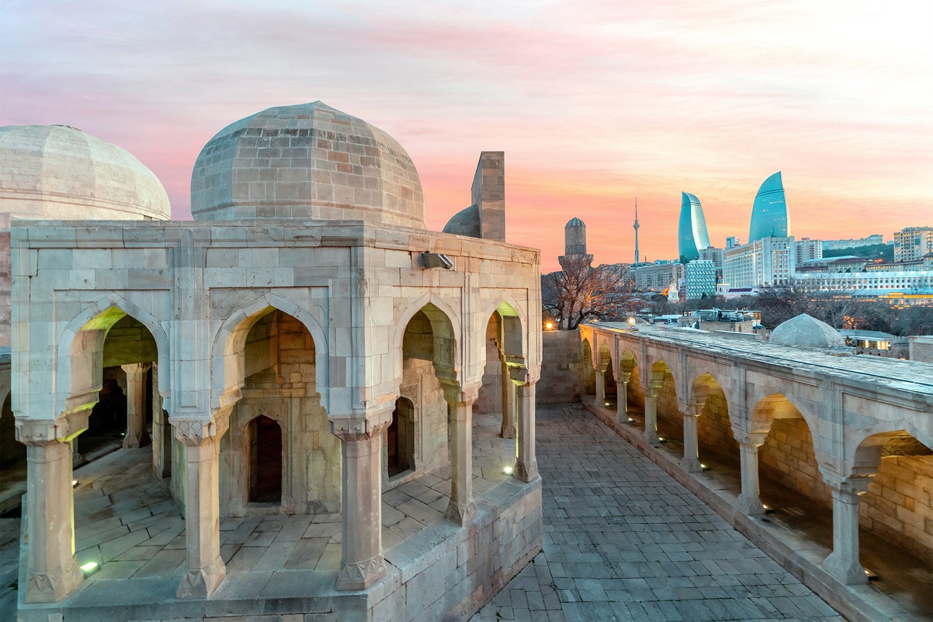 Вы раскроете тайны и легенды Девичьей башни, оцените восточное убранство караван-сараев и ощутите мистический колорит старинных склепов и одухотворяющее спокойствие мечетей. Далее увидите дворец Ширванских шахов, Ханский дом и крепостные оборонительные сооружения. Найдете места, где снималась «Бриллиантовая рука», посетите мастерскую художника Али Шамси и увидите дом, где жил святой Мир Мовсум Ага.